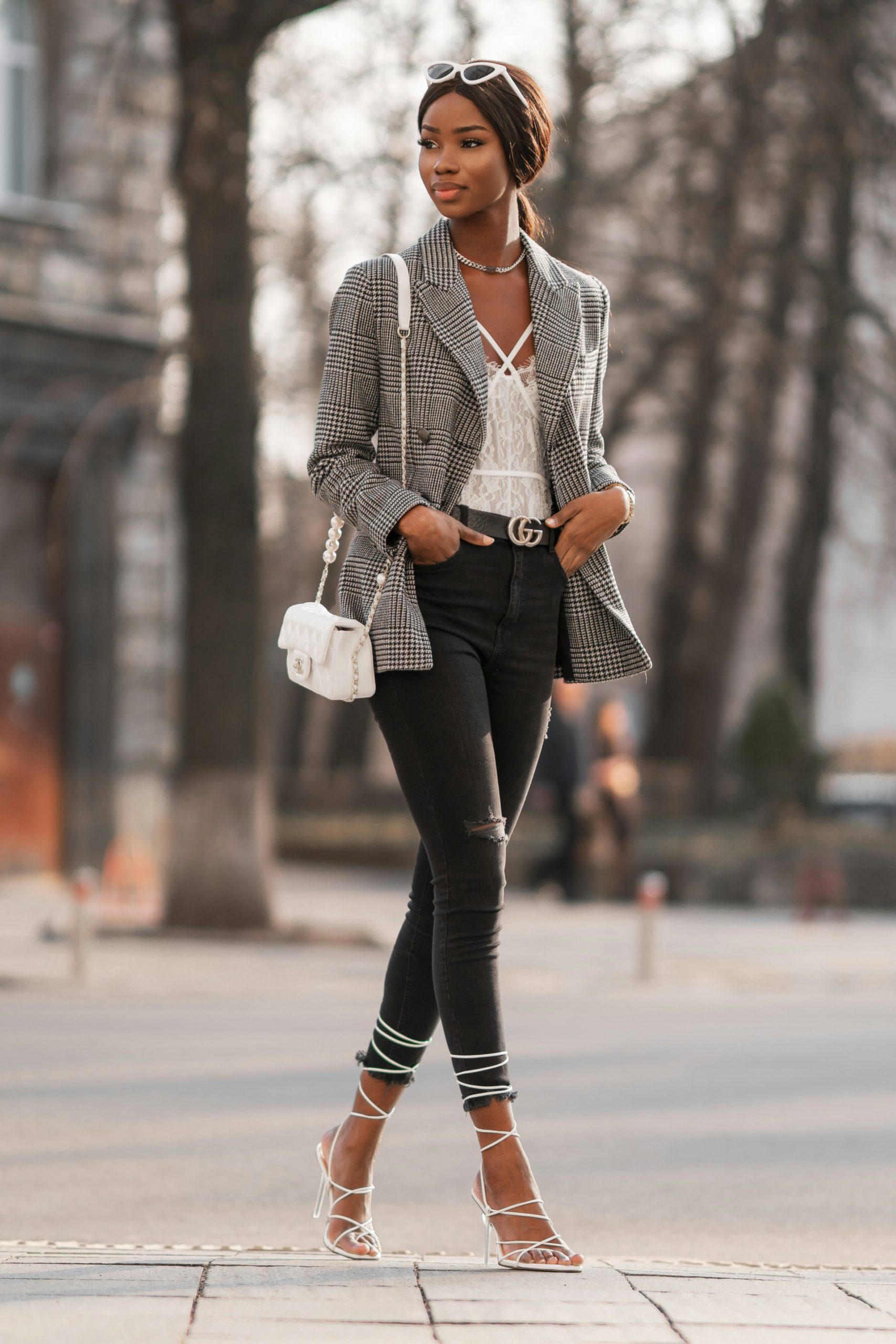 Another easy trick to appear taller is to tuck in your tops. By doing a French tuck or a full tuck, you’ll be defining your waist and the upper half of your body. A tuck will help highlight your body figure and balance your body proportions.